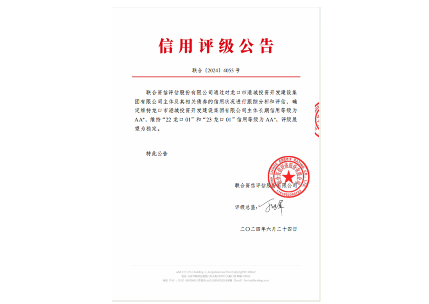 11月龙口龙投国有控股有限公司取得联合资信AAA 评级。完成组织架构理顺,搬迁至华为大数据运营。确立了以云龙控股为顶层,管理多家AA+及AAA级子公司的集团架构。